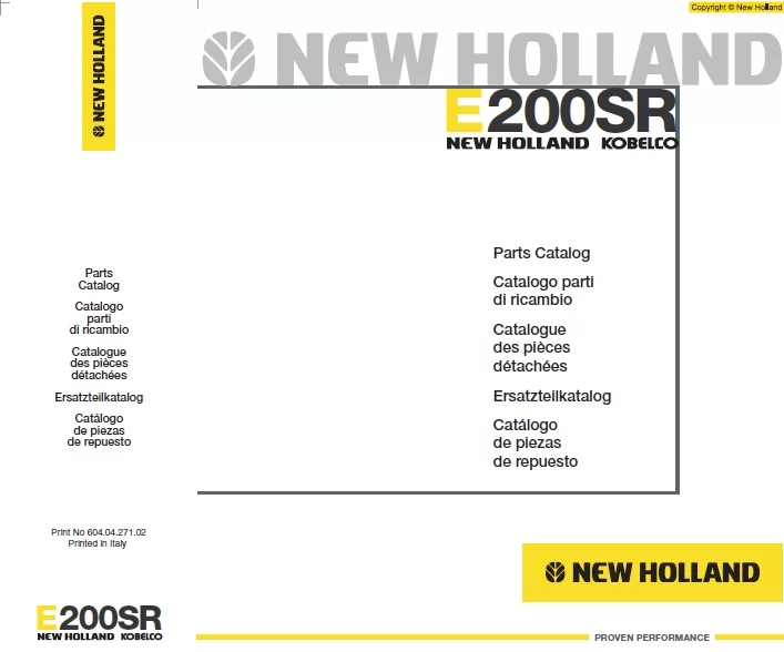 Este manual está diseñado exclusivamente para la MANUAL PARTES NEW HOLLAND E200SR, ampliamente utilizada en proyectos de construcción y movimientos de tierra.
