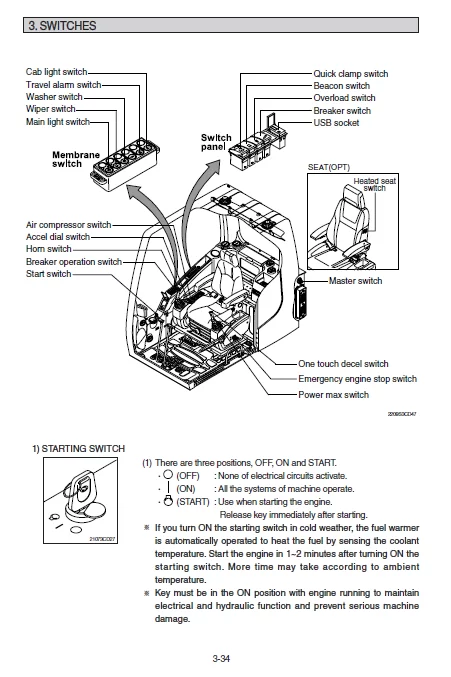 - Incluye información técnica sobre el motor diésel, motor de giro, mangueras, válvulas, sistemas hidráulicos y eléctricos, entre otros componentes clave.