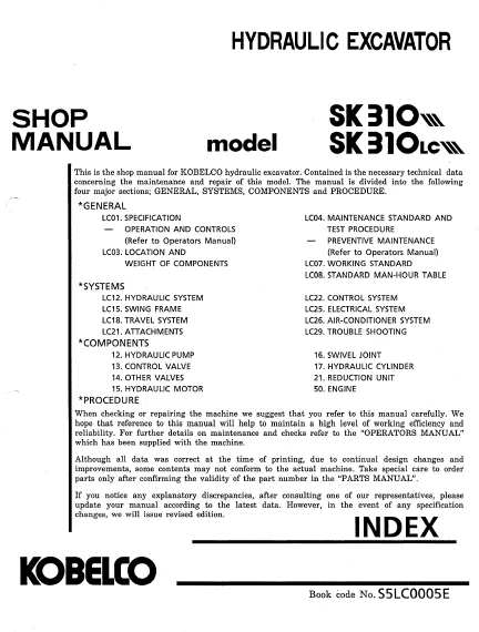Este manual está diseñado exclusivamente para la MANUAL SERVICIO EXCAVADORA KOBELCO SK310 SK310(LC) III, ampliamente utilizada en proyectos de construcción y movimientos de tierra.