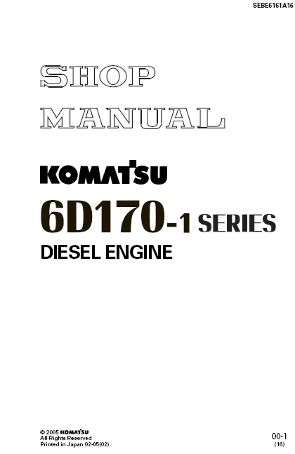Este manual está diseñado exclusivamente para la MANUAL SERVICIO EXCAVADORA SHOP MANUAL KOMATSU 6D170-1 SERIES DIESEL ENGINE, ampliamente utilizada en proyectos de construcción y movimientos de tierra.