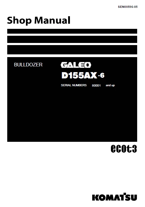 Este manual está diseñado exclusivamente para la MANUAL SERVICIO EXCAVADORA SHOP MANUAL KOMATSU D155AX-6, ampliamente utilizada en proyectos de construcción y movimientos de tierra.