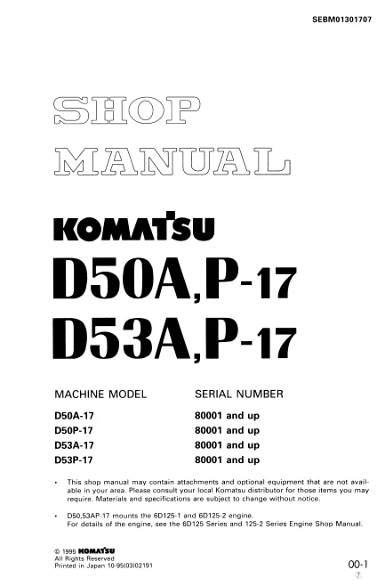 Referencia: SHOPMANUALKOMATSUD50A,P-17D53A,P-17SEBM01301707