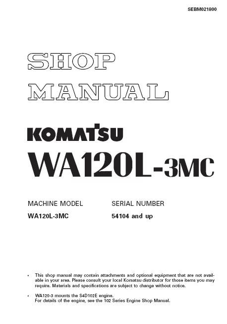 Este manual está diseñado exclusivamente para la MANUAL SERVICIO EXCAVADORA WHEEL LOADERS SHOP MANUAL KOMATSU WA120L-3MC, ampliamente utilizada en proyectos de construcción y movimientos de tierra.