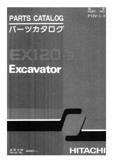 The HITACHI EX120-3 PARTS MANUAL (EX120-3P12V-1-3_SERIALNO40001~) is an indispensable resource for technicians and operators of Hitachi EX120-3 excavators. This comprehensive manual provides detailed diagrams, precise technical specifications, and step-by-step maintenance procedures for every part of the machine. Ensure optimal performance and extend the lifespan of your Hitachi EX120-3 with this essential guide. It facilitates easy component identification, understanding their function, and accurately replacing worn or damaged parts. Prevent costly repairs and downtime by proactively addressing common issues like premature component wear and hydraulic leaks. The manual offers precise instructions for identifying and rectifying these problems, ensuring your excavator operates efficiently and safely. We recommend a thorough reading of the manual to fully understand your machine and its components. Pay close attention to preventive maintenance procedures, lubrication techniques, and the importance of using genuine Hitachi parts for optimal results. This manual is critical for the effective maintenance and repair of the Hitachi EX120-3, a model widely used in construction, mining, and other earthmoving operations.